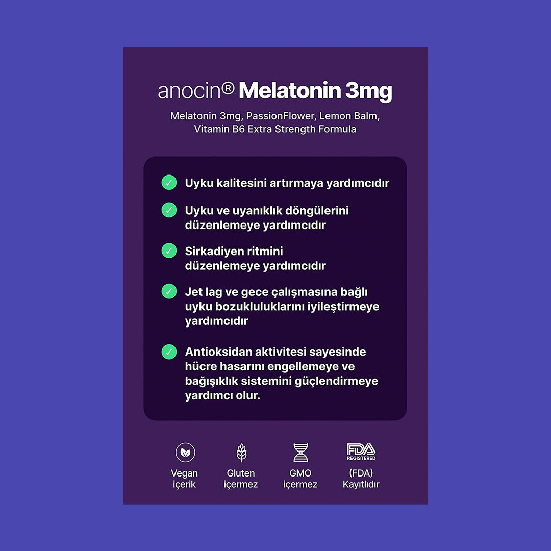 أقراص أنوسين الميلاتونين وفيتامين ب6 هي مكمل غذائي مصمم لمساعدتك على تحسين نوعية نومك والاسترخاء. تجمع هذه الأقراص بين فوائد الميلاتونين، وهو هرمون النوم الطبيعي في الجسم، وفيتامين ب6 الذي يدعم صحة الجهاز العصبي.