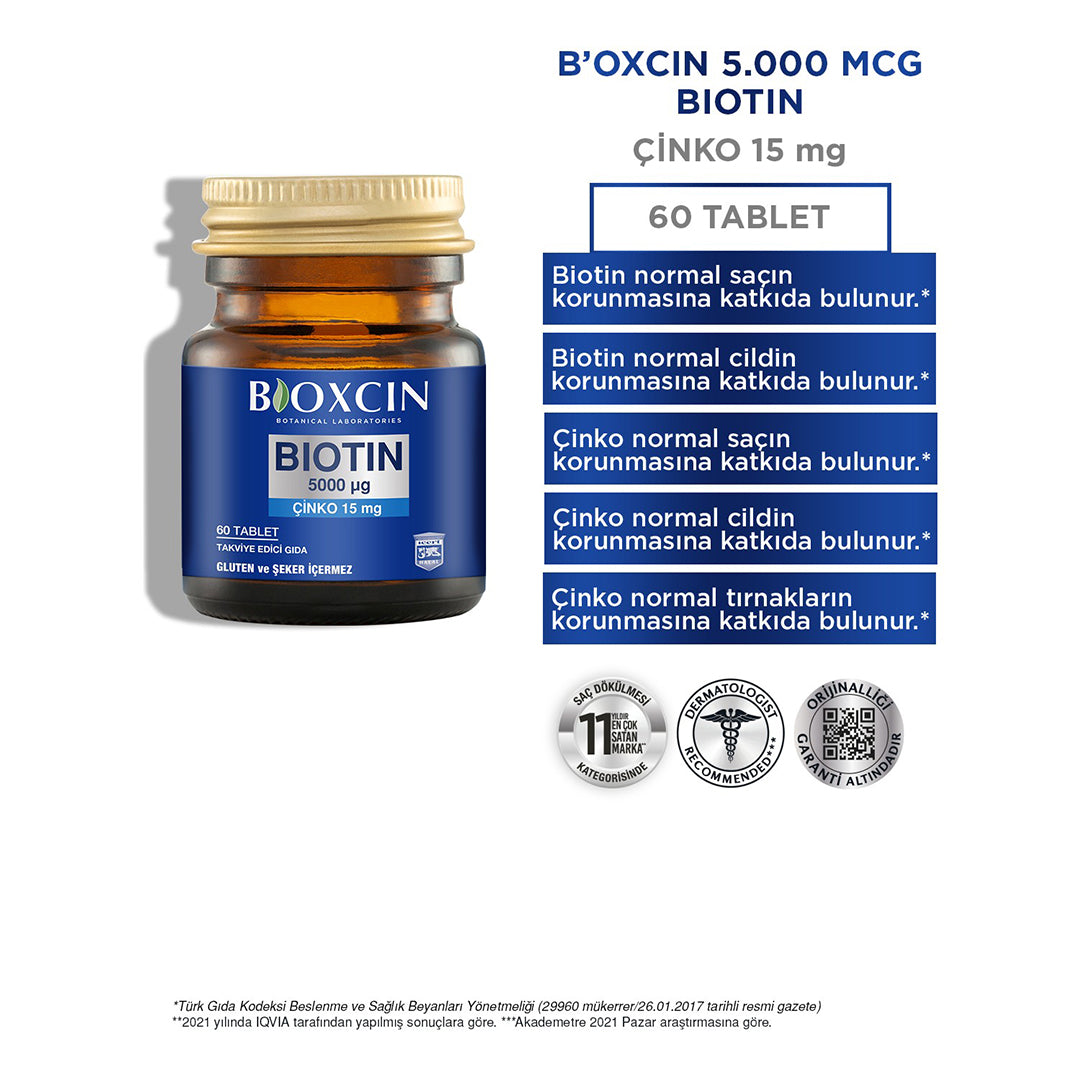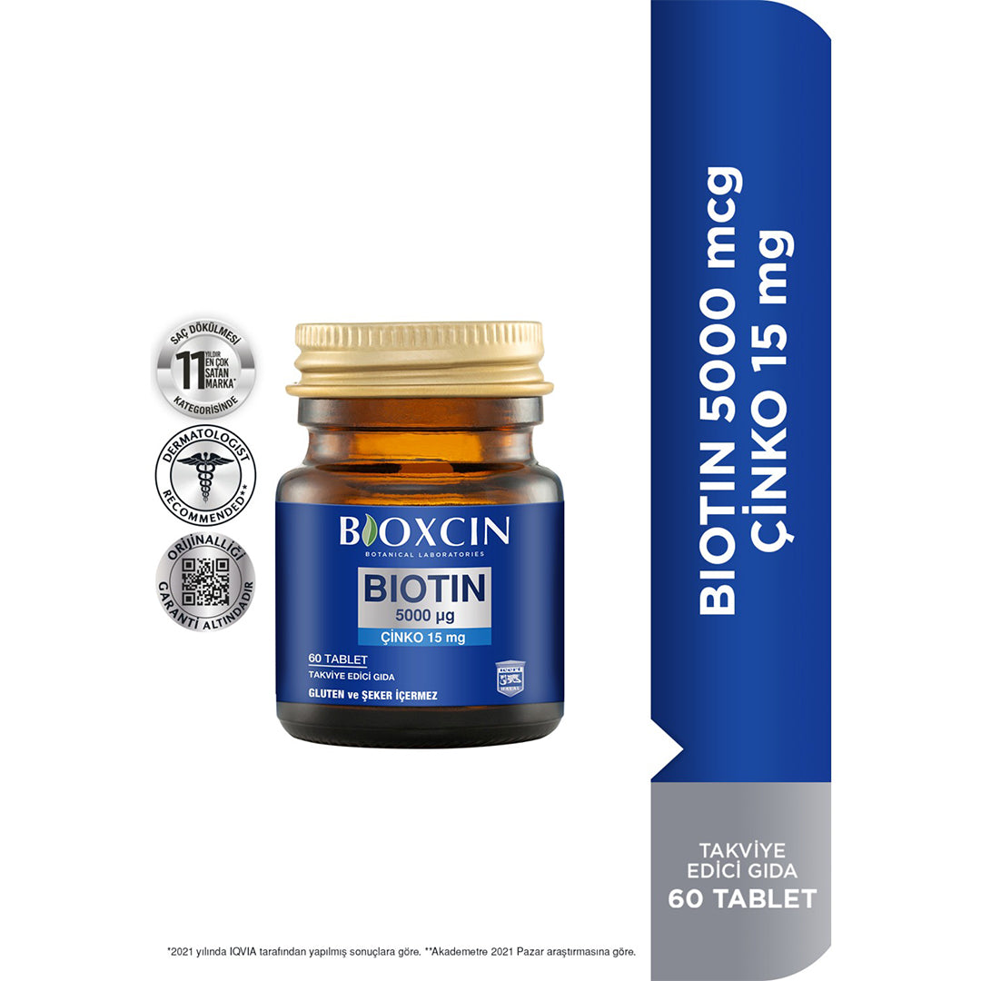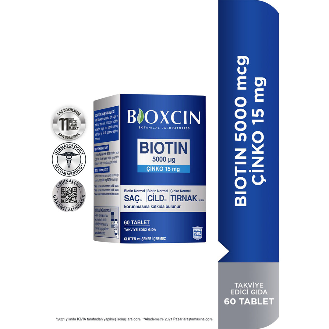 بايوكسين بيوتين مكمل غذائي 5000 ميكروجرام 60 قرصًا Bioxcin Biotin 5000 Mcg Food Supplement