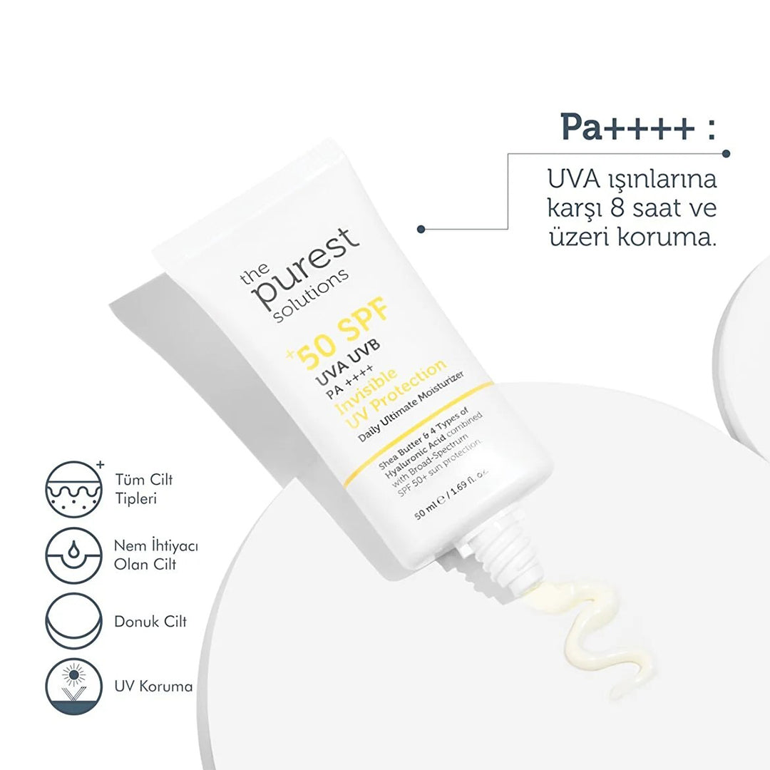 واقي الشمس من ذا بيورست سوليوشنز هو منتج أساسي للعناية بالبشرة، يوفر حماية واسعة الطيف من أشعة الشمس الضارة (UVA و UVB) مع عامل حماية من الشمس SPF 50. هذا الواقي مصمم لحماية بشرتك من الحروق الشمسية، وتأخر ظهور علامات الشيخوخة، وتقليل خطر الإصابة بسرطان الجلد.