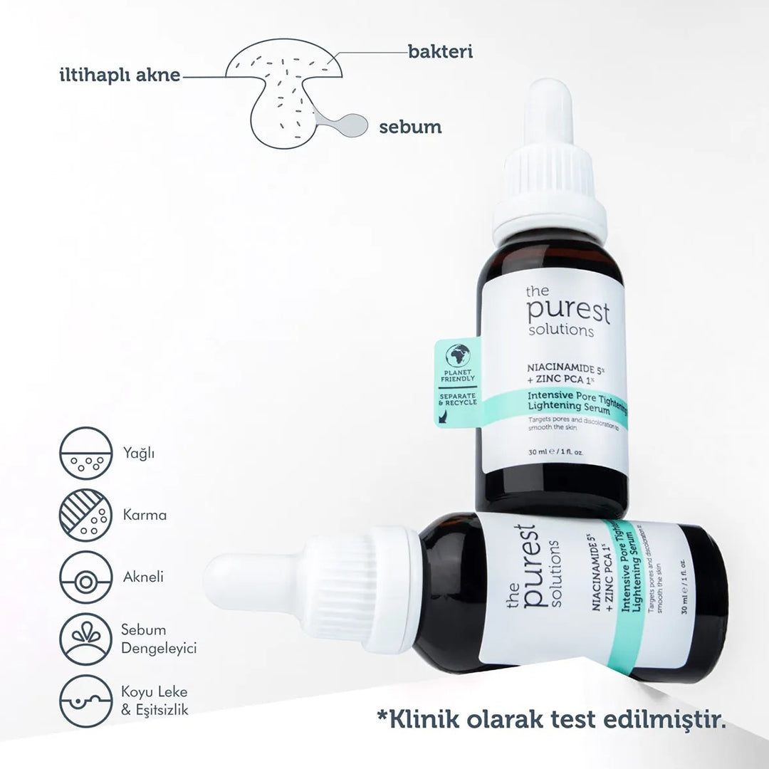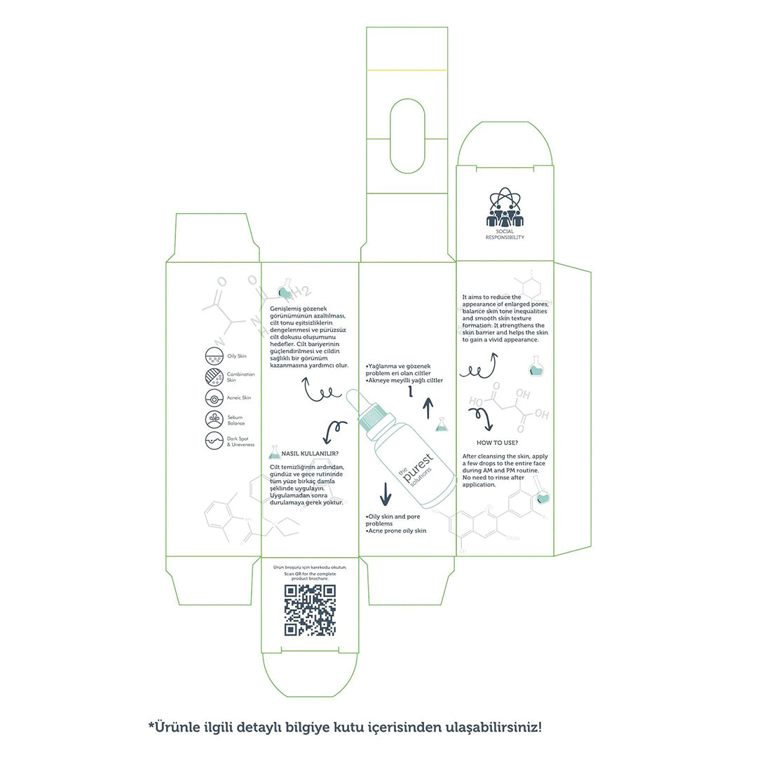 مصل للعناية بالبشرة مصمم لتقليل المسام وموازنة لون البشرة وتقوية حاجز الجلد وتعزيز مظهر أكثر صحة للبشرة مع استهداف مشاكل مثل البقع الداكنة ولون البشرة غير المتساوي والرؤوس السوداء وحب الشباب.
