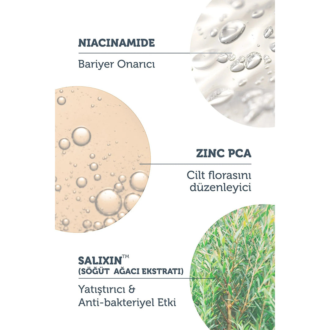 النياسيناميد: يقوي حاجز الجلد ويساهم في عملية تجديد البشرة وينشطها. يوازن إنتاج الدهون، مما يساعد على التحكم في دهنية البشرة الشديدة. يقلل من فرط التصبغ، ويعزز مظهر البشرة الأكثر إشراقًا.