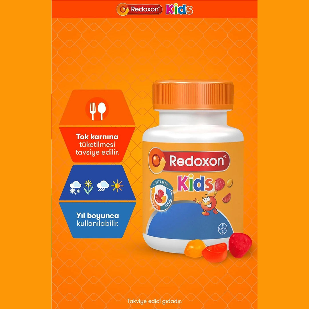 ريدوكسون كيدز هو مكمل غذائي مصمم خصيصًا للأطفال. يأتي على شكل أقراص قابلة للمضغ بنكهات لذيذة. يحتوي على مزيج من الفيتامينات والمعادن التي تدعم صحة الطفل العامة، بما في ذلك: