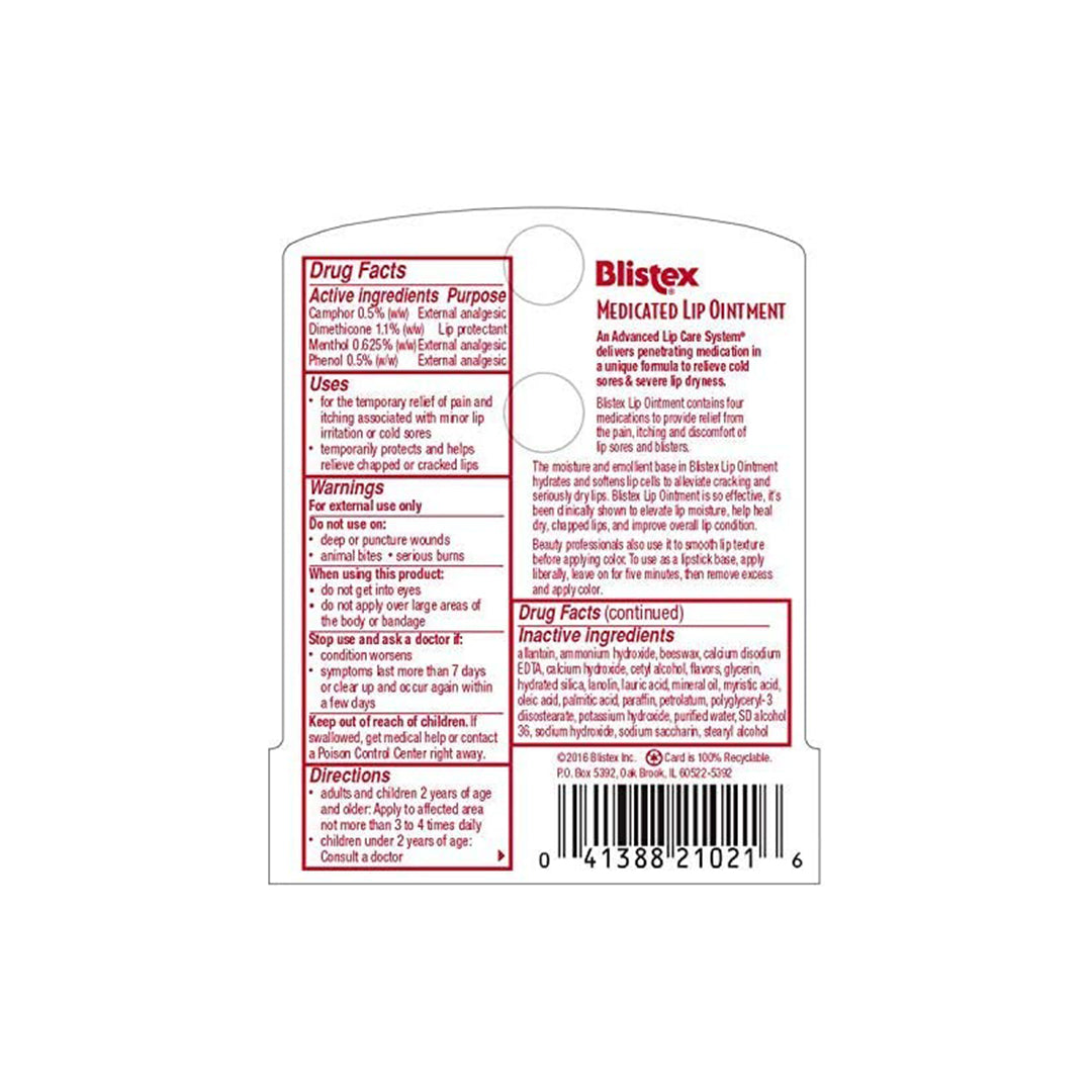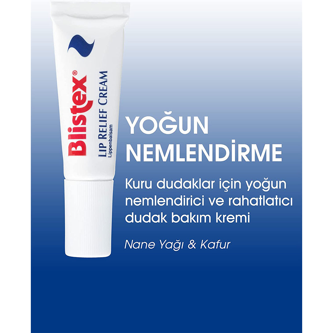 • يحتوي مستحضر Blistex Lip Relief على زيت الكافور والزعتر ويتغلغل على الفور في شفتيك المتشققة والمؤلمة ويدعم الاسترخاء.