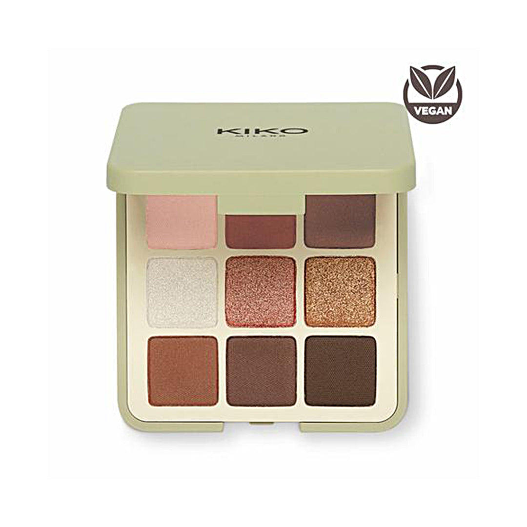 كيكو باليت ظلال العيون جرين مي Kiko green me eyeshadow palette لوحة تحتوي على 9 ظلال عيون مختلفة في علبة بودرة: غير لامعة، لؤلؤية، ومعدنية. كيكو باليت ظلال العيون جرين مي مثالي لخلق مظهر متطور لعينيك، طبيعي خلال النهار أو مكثف خلال المساء. تركيبة ظلال العيون الخضراء، والتي يتم الحصول على 93% منها من مواد خام ذات أصل طبيعي، غنية بزيت الأرجان العضوي وزيت بذرة القطن وزيت الأفوكادو. كما تتوفر ظلال العيون بتسعة ألوان، وتتميز بتغطية عالية وملمس ناعم وسهل المزج. تعتبر المرآة المدمجة سهلة الاستخدام مثالية لإجراء التعديلات أثناء التنقل. إنه نباتي تم اختباره بواسطة أطباء العيون. تم تصنيع غلافه من البلاستيك الحيوي