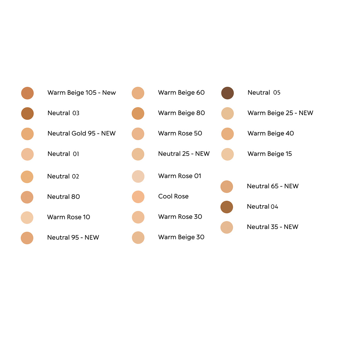 يتوفر 21 لونًا لجميع ألوان البشرة.